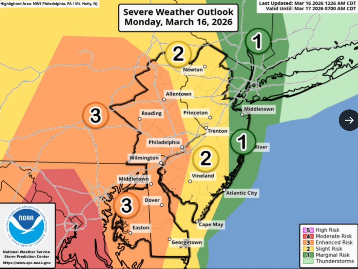 The National Weather Service characterized the front as “significant,” and rated it more severe than thunderstorms that have hit the area within the last two weeks. The Philadelphia region is within the agency’s Level 3 “enhanced risk” zone for the storm.