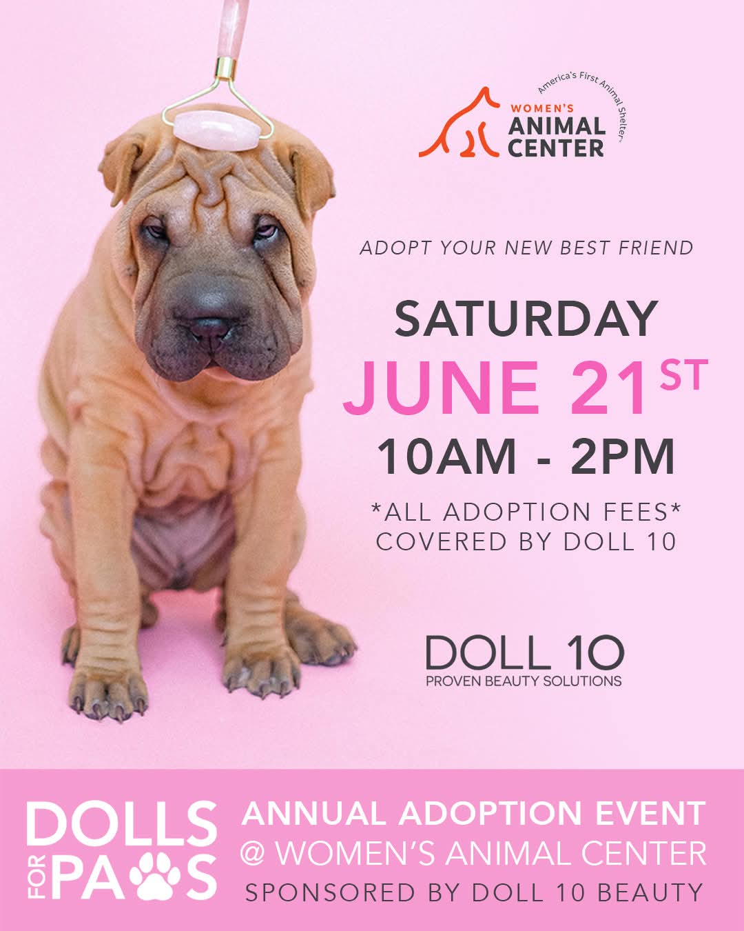 Adopters will receive Doll 10 adoption gift bags, and, of course, unconditional love with each shelter pet adopted.