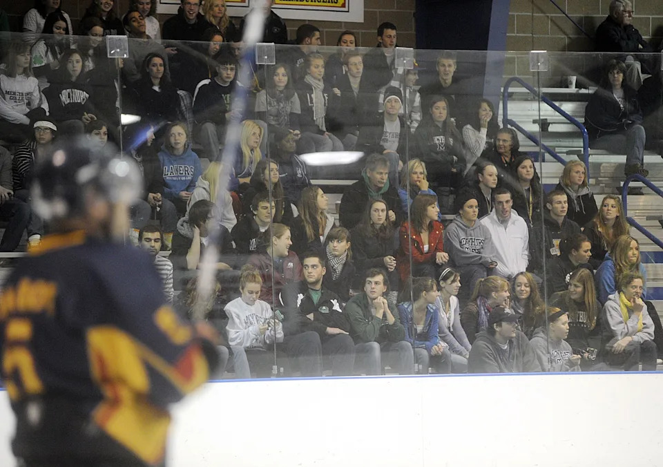 The crowd watches the game between Mercyhurst University and the Queen’s Gaels at the Mercyhurst Ice Center on Oct. 3, 2010.