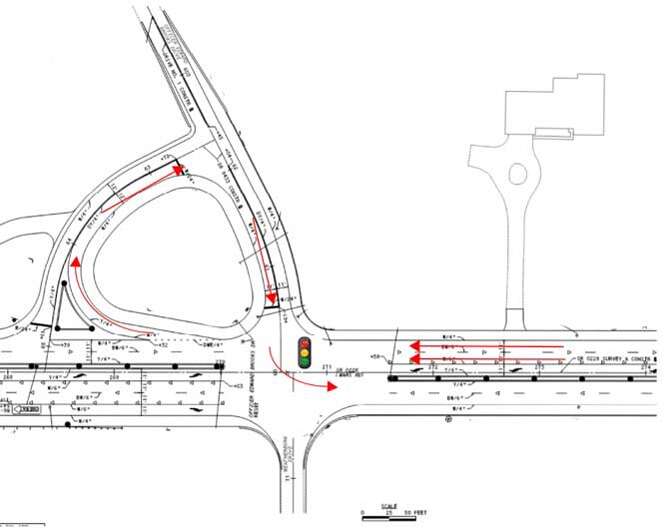 A plan view of the Officer Edward Brooks Drive jughead shows how to change from traveling westbound to eastbound after changes to left turns along Route 228 were announced Friday, March 27, 2026. Submitted image