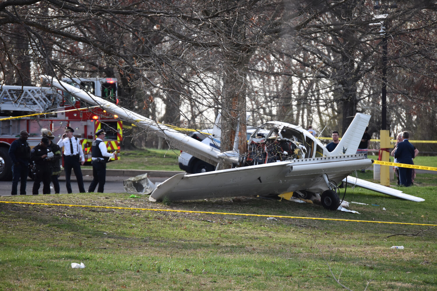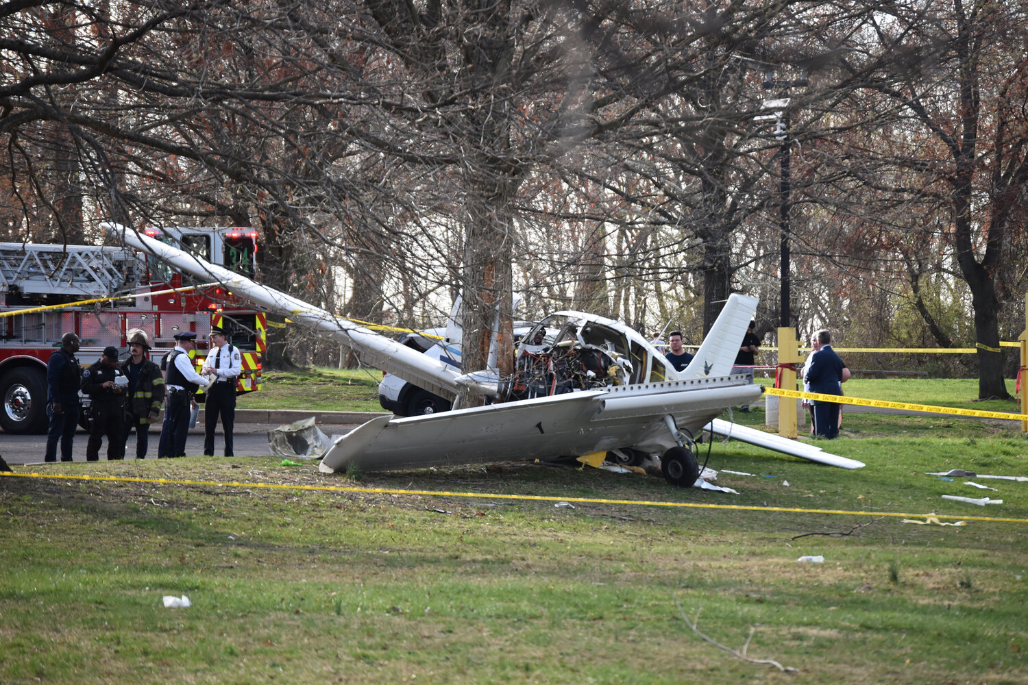A small plane crashed in Fluehr Park in Northeast Philadelphia on Wednesday, April 1, 2026.