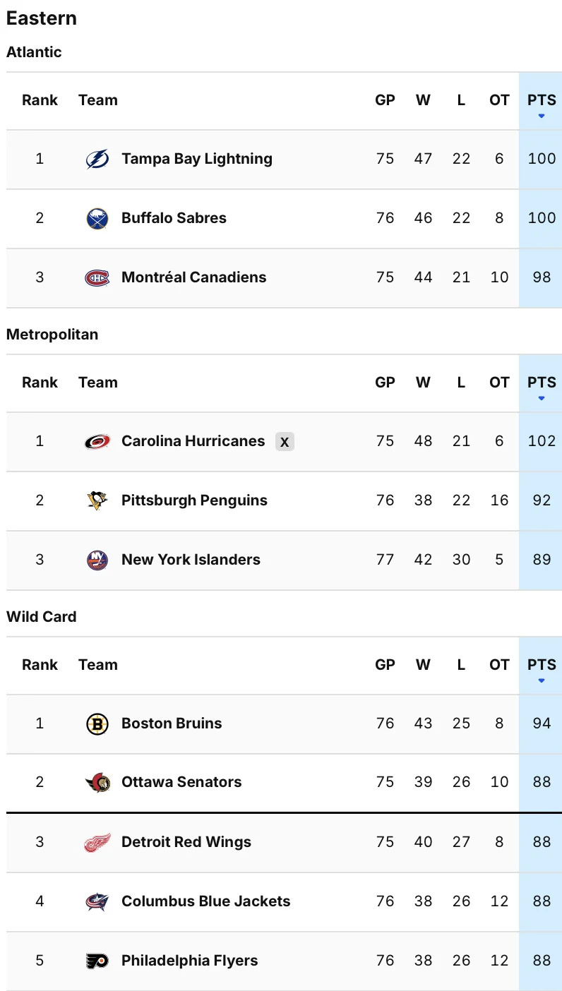 Opponent Track: The two-time defending champions are all but out of playoff contention, but that hasn’t stopped them from playing spoiler as of late with back-to-back wins against the Ottawa Senators and Boston Bruins.