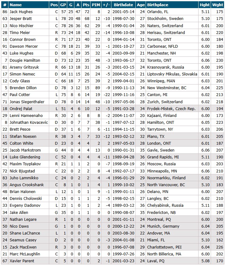 Jesper Bratt – Jack Hughes – Connor Brown