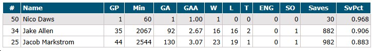 Goalies: Jacob Markstrom and Jake Allen