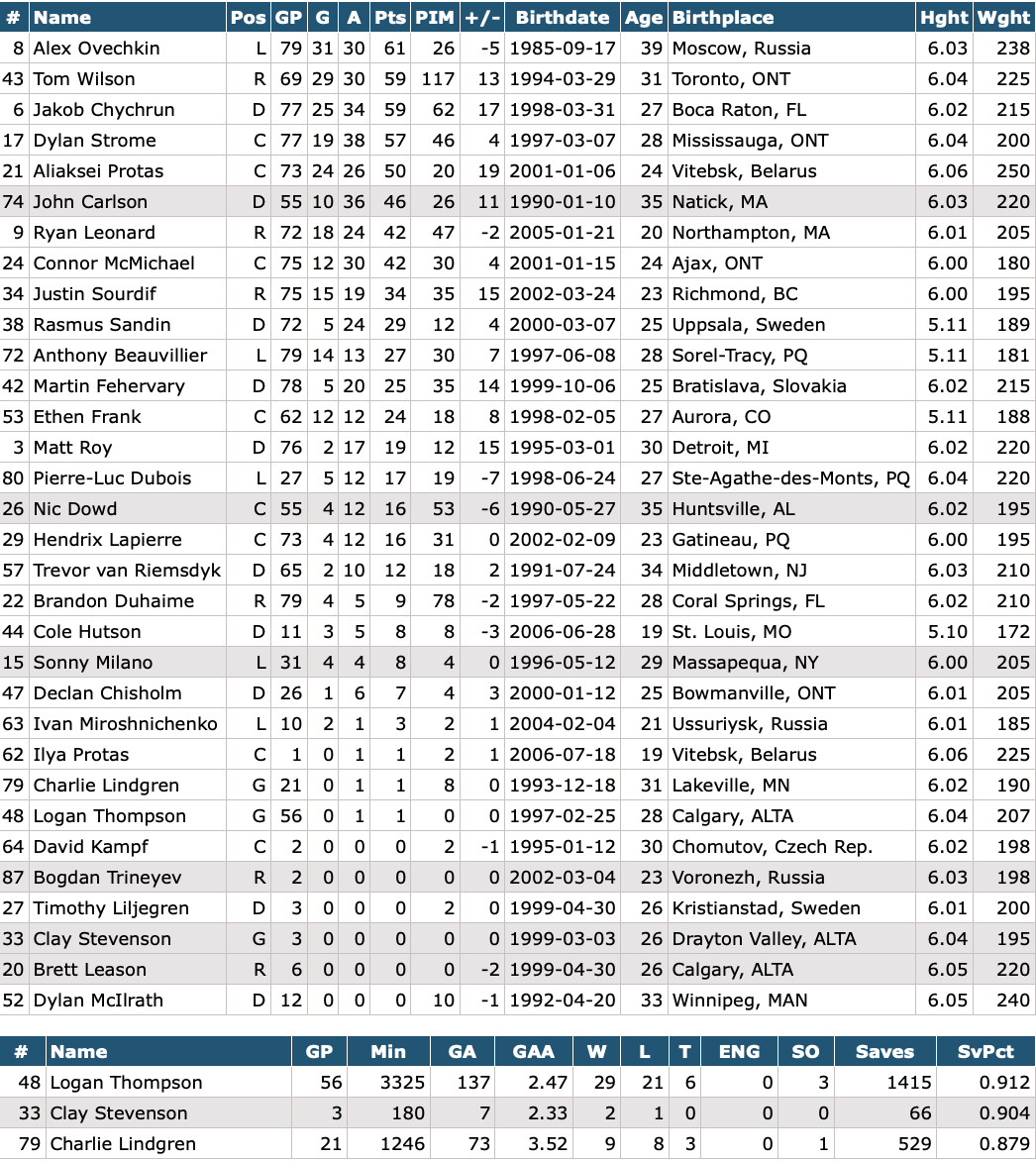 Ilya Protas, the 19-year-0ld brother of Caps winger Aliaksei Protas, made his NHL debut on Wednesday. The Capitals are currently running both brothers, who each measure in at 6’6” on either side of Tom Wilson (6’4”). The trio weighs more than 300 pounds combined.Ilya Protas isn’t the only young Capital making his NHL debut down the stretch. Nineteen-year-old defenseman Cole Hutson has eight points (three goals, five assists) in 11 games since making his NHL debut in March.Goaltender Charlie Lindgren was a full participant in practice Friday and is traveling with his team to Pittsburgh, Caps coach Spencer Carbery told reporters. Logan Thompson, who most recently backstopped the Caps to a 4-0 shutout of the Toronto Maple Leafs, is likely to get the start today in Pittsburgh, but having Lindgren back for Sunday could determine who starts the latter half of the back-to-back.Tom Wilson is one goal shy of hitting the 30-goal plateau for the second time in the NHL career. Ovechkin already hit that mark in 75 games to mark his NHL-record 20th season with at least 30 goals.Is this Ovechkin’s last game in Pittsburgh? The Washington captain recently announced he won’t be deciding whether to return for another NHL season until after the Caps’ run this season is over. How soon fans find out could depend at list in part on whether the Pens are able to play spoilers for the Capitals’ playoff chances today at PPG Paints. The Caps are at the very least honoring his last home game of the season by giving out special rally towels to fans in attendance on Sunday in D.C.