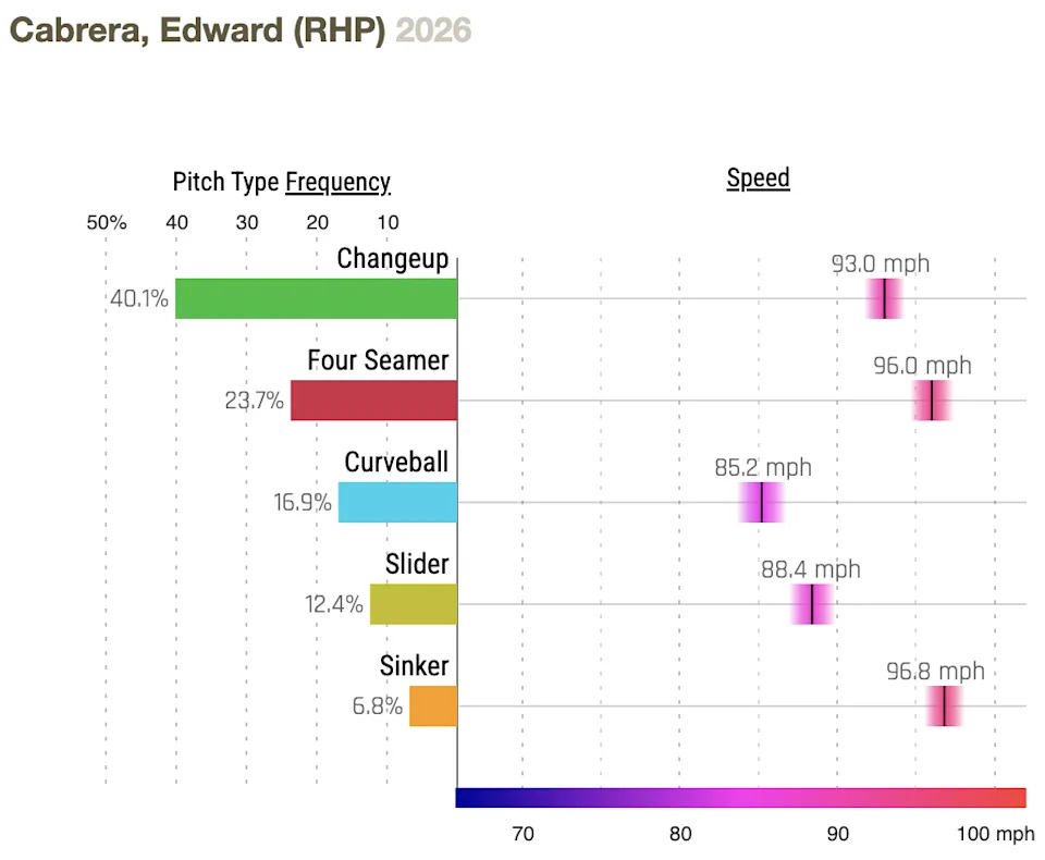 Cabrera hasn’t faced the Pirates since 2023, and the only current Pirate who has more than a couple of at-bats against him is Marcell Ozuna (2-for-11 with four strikeouts).