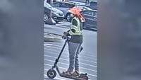 Police say the unidentified thief, who arrived at the retail stores on an electric scooter, walks with a slight limp in his left leg.