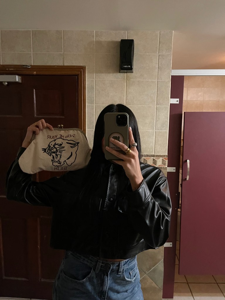 I had made this little kiss lock purse, and I’d embroidered it with a cougar — growling, snarling on the front of it, and then painted the words, “show me your teeth.” It was right before I moved that I made that bag. I wanted the brand to be something that’s animalistic and kind of bold, but not overly aggressive. Then I found myself looking back at that bag that I had originally made, and she’s just, like, snarling on the bag. I was like, “Oh, that’s perfect.”