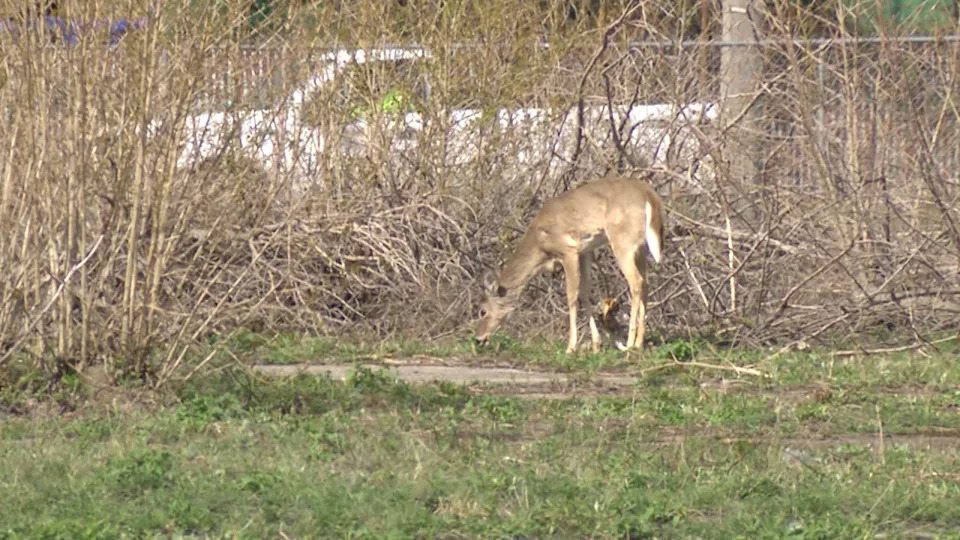 Ross described it as a ‘small, skinny’ doe that doesn’t look like it’s receiving any food except for the brush on the property.