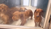 A fenced-in porch area was coated with feces, and multiple dogs were also seen in crates in the garage, living in feces-laden conditions, officials shared. Those dogs included a mother German Shepherd and her puppies were found crammed into a crate.