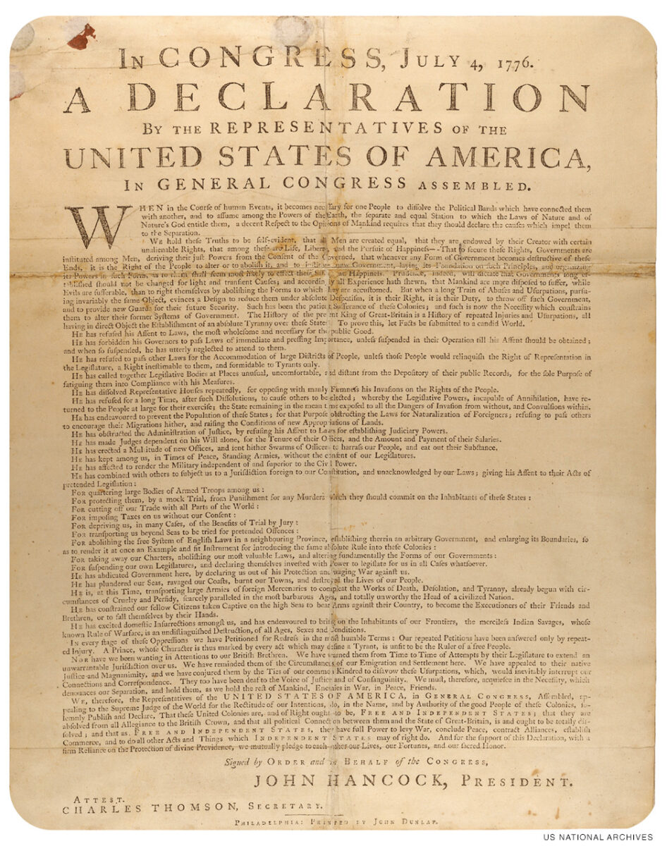 John Dunlap’s original 1776 printing of the Declaration of Independence will be replicated