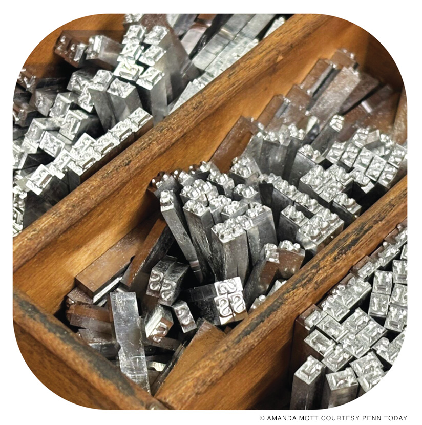by handsetting metal type (above) at Penn’s Common Press Studio. Broadside courtesy US National Archives; type photo by Amanda Mott courtesy Penn Today