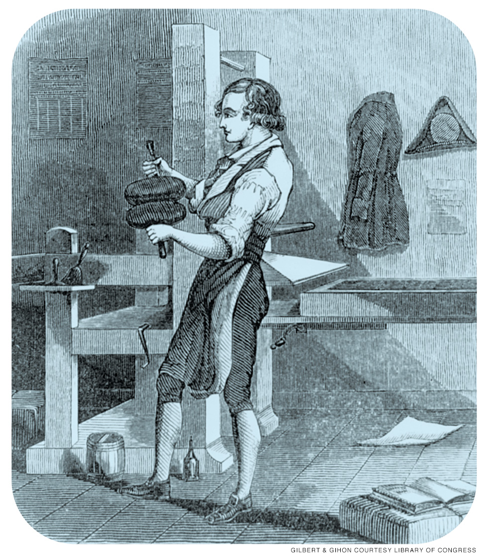 A more historically accurate representation of Dunlap’s working conditions in his Philadelphia print shop at Second and High (now Market) Streets would have included real candles—but open flames are not allowed inside the Fisher Fine Arts Library, where the Common Press sits tucked away in the historic building’s basement. Dedicated to “the scholarly exploration and creative practice in the history, craft, and material culture of printing and bookmaking,” the studio is in the midst of a yearlong program called “The Typography of Independence” during which it has been hosting events to mark the country’s 250th anniversary.