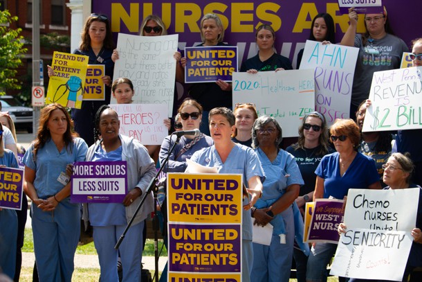 Last year, registered nurse Sam Miller led efforts to win a groundbreaking union contract for West Penn Hospital, where she is president of the local chapter of SEIU Healthcare Pennsylvania. Her efforts helped establish staffing levels set by the National Association of Women’s Health, Obstetric and Neonatal Nurses, along with significant raises to retain and recruit experienced nurses. An 18-year veteran of the profession, she currently works in the hospital’s Labor and Delivery department.
