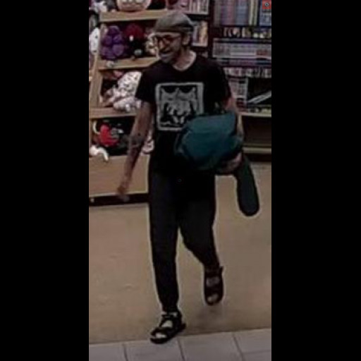 The first theft occurred on October 12, 2025 when a male entered the store and removed or was carrying a green jacket. He went into the pre recorded media area and possibly used that jacket to conceal $212.00 worth of DVD’s. He left on foot without paying for anything ,