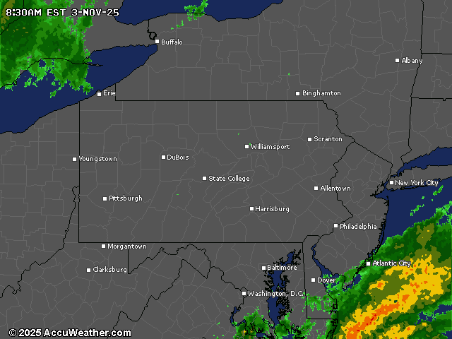 A cold front will bring cooler and drier air with westerly winds of 10-15 mph, while AccuWeather.com reports two separate storms creating a “squeeze play” across the Northeast for Monday, Nov. 3, 2025.AccuWeather.com