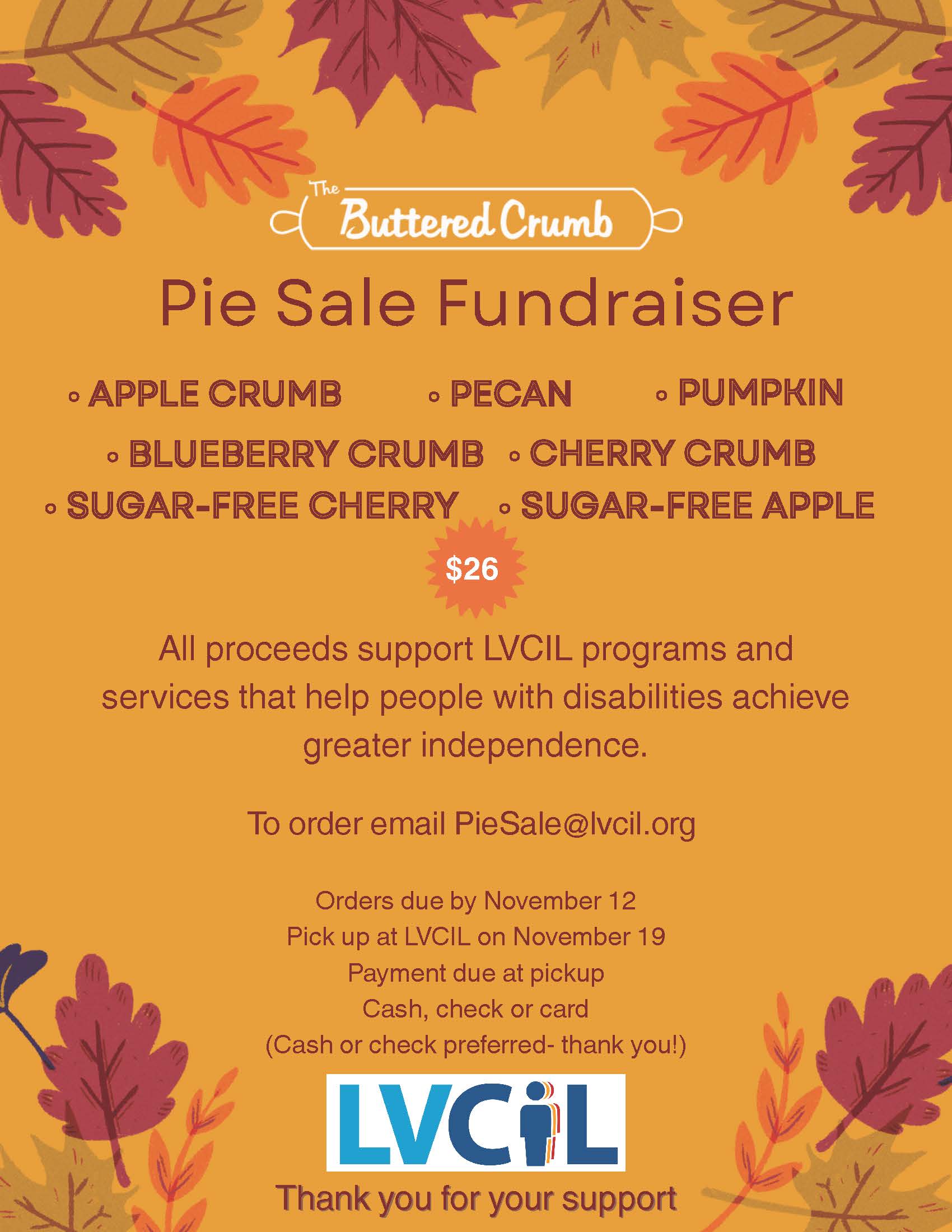 LVCIL is partnering with The Buttered Crumb for its annual pie sale fundraiser! All pies are $26, and come in the following flavors: