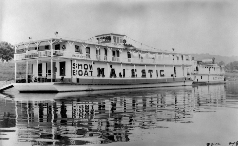 Capt.Thomas Reynolds built the Showboat Majestic in Pittsburgh in 1922. After a long career working the Ohio and Mississippi rivers, the boat was retired in Cincinnati where it became a university-owned theater. Courtesy the Murphy Library Special Collections/ARC, University of Wisconsin-La Crosse.