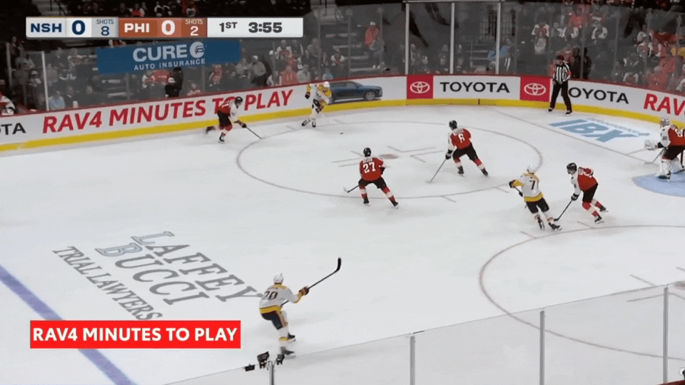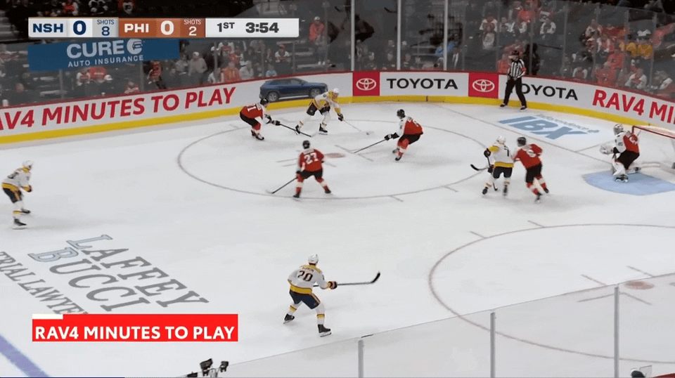 You can actually see Vladar begin this movement before the pass was even made. In order to push to that far post, he had to completely rotate his hips flat along the goal line. By anticipating the pass as early as he did, Vladar took care of the rotation and got his pad flat along the ice before Bratt even received the pass.