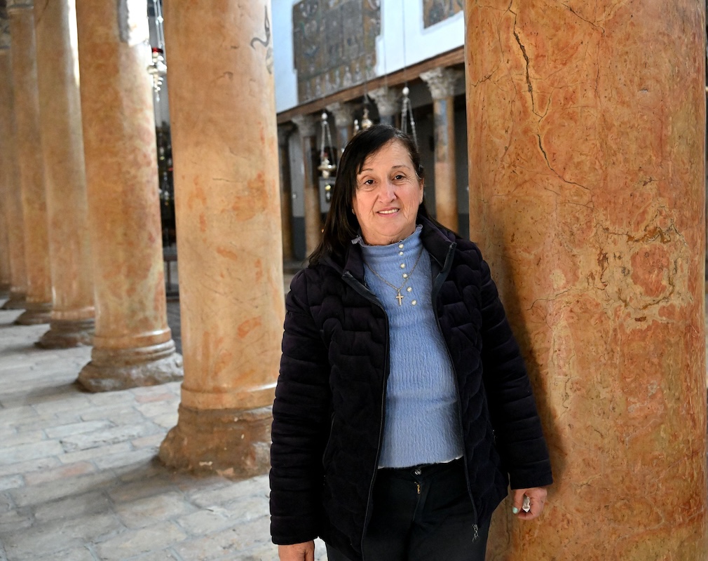 Nadeera Sleibi, an English and French teacher at the Rosary Sisters School, visits the Church of Nativity in Bethlehem, West Bank, Dec. 8, 2025. The church is built on what is believed to be the site where Jesus was born. (OSV News photo/Debbie Hill)