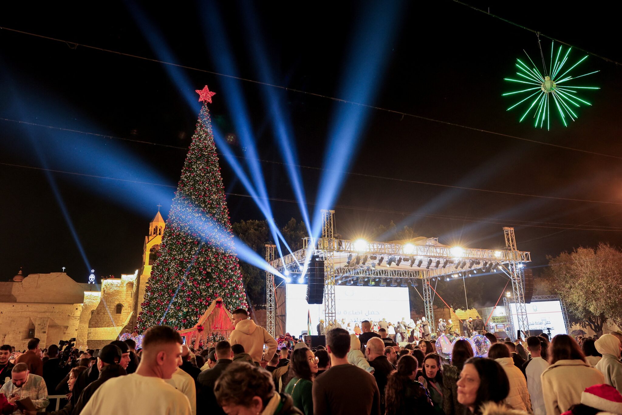 All Christmas festivities, other than the traditional religious ceremonies, had been previously canceled in light of the war in Gaza, but on 6 December thousands of mostly local residents attended the official Christmas tree lighting ceremony for the first time in two years. Festive holiday lights flashed above the crowd, “Santas” handed out candied apples, and families took pictures in front of the twinkling tree and the Nativity scene creche.