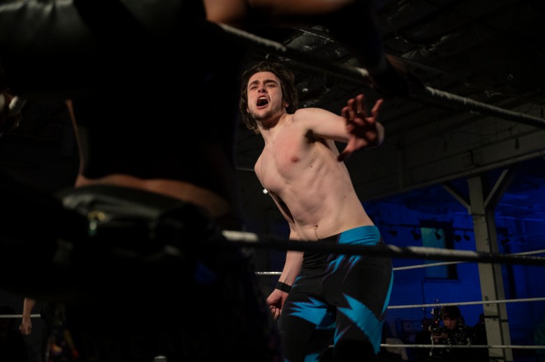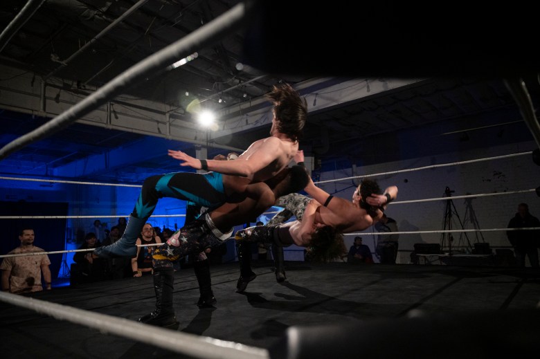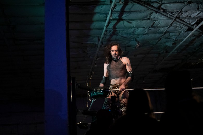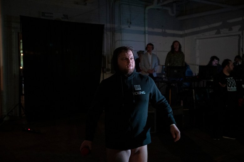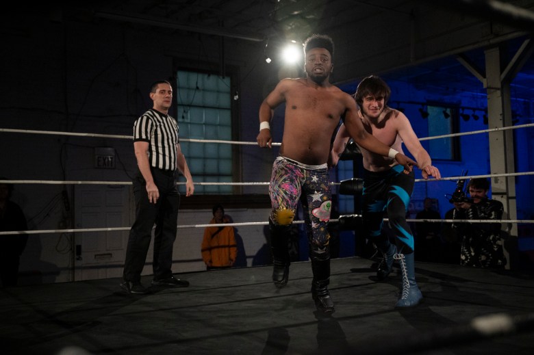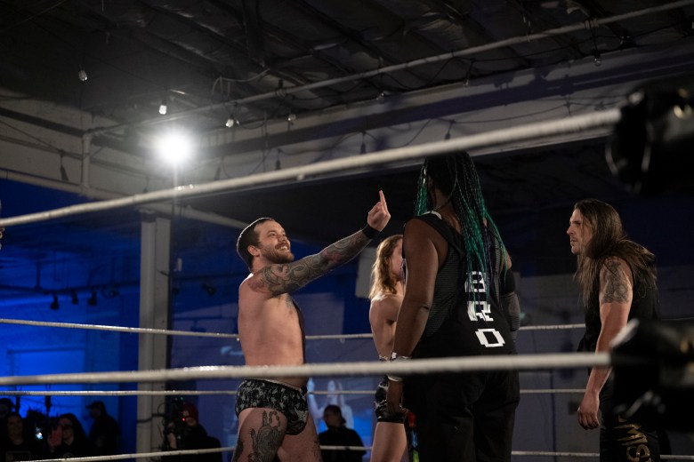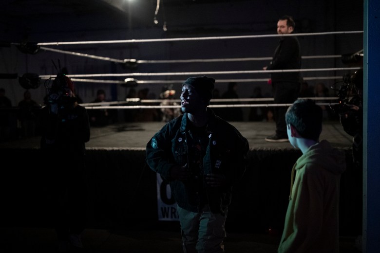 J.A.Z. prepares to wrestle 880 Wrestling showcases their lineup of wrestlers during 880 Wrestling’s first show at their new venue in Allentown on Dec. 11, 2025. Credit: Mars Johnson