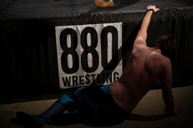 Dev Swayze wrestles during 880 Wrestling’s first show at their new venue in Allentown on Dec. 11, 2025. Credit: Mars Johnson