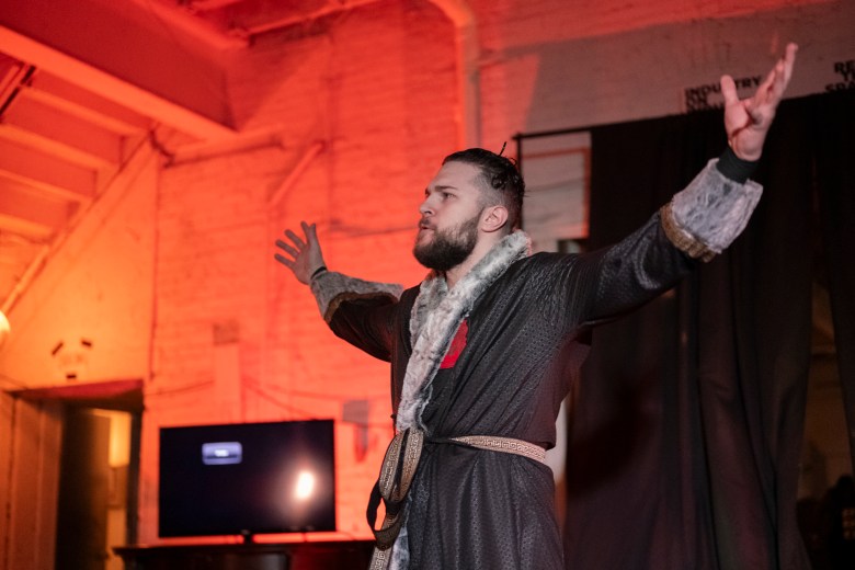 Brohemoth hypes up the crowd during 880 Wrestling’s first show at their new venue in Allentown on Dec. 11, 2025. Credit: Mars Johnson