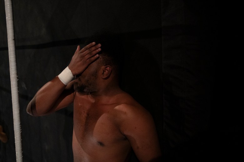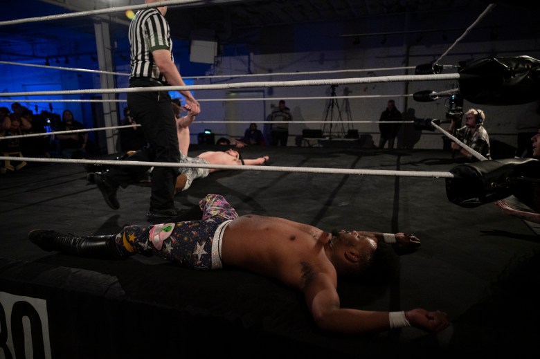 Alao Dreams lies on the mat during a tag team match Credit: Mars Johnson