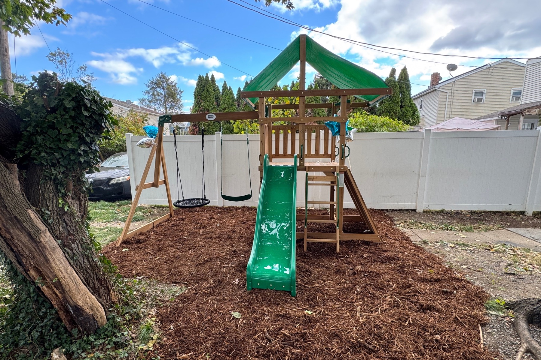Anewalt’s Landscape Contracting also generously volunteered their services, mulching the play area to create a soft, safe, and welcoming space for the child to enjoy.