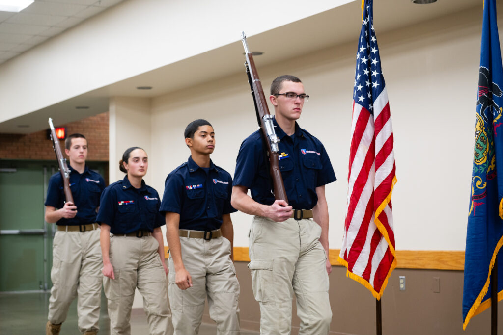 Keystone ChalleNGe Academy members present the colors at the Bells Across PA event at the Lebanon Valley Expo Center on Wednesday.