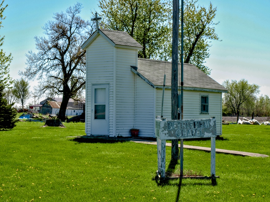 As you might expect, from the time Bethlehem, Iowa was founded in 1852, they’ve had churches. By the late 1800s, when some 300 people lived in the village, there seem to have been at least three. But today, in a community of less than 25, only one remains: an almost impossibly small nondenominational wayside church known to locals as The Bethlehem Chapel.