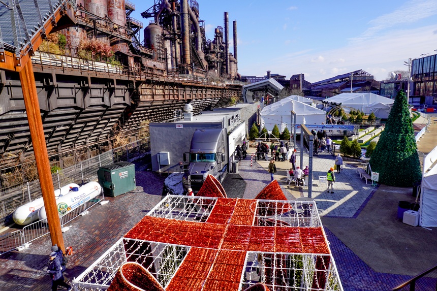 Today they stand cold and silent; and on this particular day they preside over the Lehigh Valley Christkindlmarkt, a holiday tradition for 33 years. Craftspeople both local and regional stand in their stalls offering hand-made ornaments for sale. Ice carvers do their chainsaw thing. And kids labor over holiday crafts at a station sponsored by Crayola Crayons, a Lehigh Valley corporate resident for 140 years.