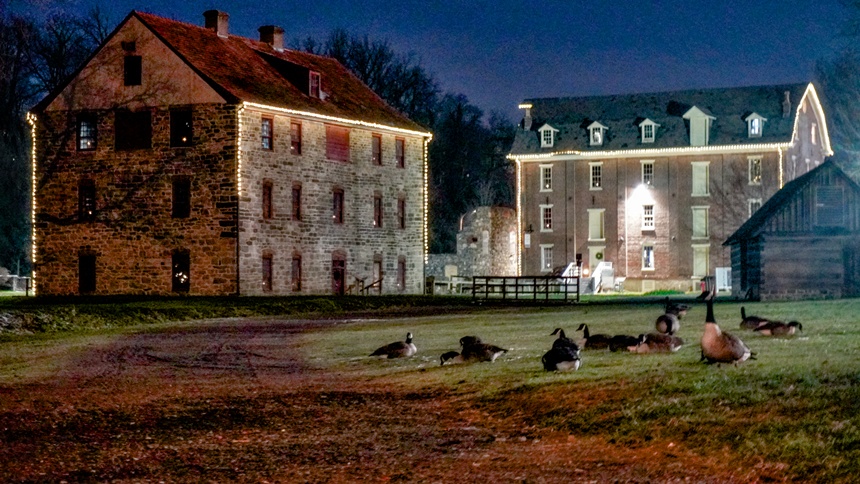 A clucking cluster of geese, picking at strands of grass poking through the thin layer of snow, gather near a small stone building with a Christmas wreath hung on its wooden door. Virtually unchanged in more than 250 years, this modest structure is the Bethlehem Waterworks, a water wheel-powered pump house that pushed water some 100 feet upward from a spring to a community storage tank. Now a National Historic Civil Engineering Landmark — on the same list as Hoover Dam and New York’s Grand Central Station — the Moravian pump house is recognized as America’s first municipal pumped water system.