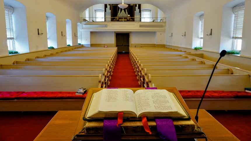 “One of my jobs is to make sure that water keeps flowing,” says Rice with a laugh. Of course, Rice’s main job is preaching in the church’s two sanctuaries. One, the 1751 “Old Chapel,” hosted George Washington, Ben Franklin, and other luminaries who wandered down from the Sun Inn for worship. White-walled and without ornamentation, the chapel reflects the simple faith that drove the early Moravians.