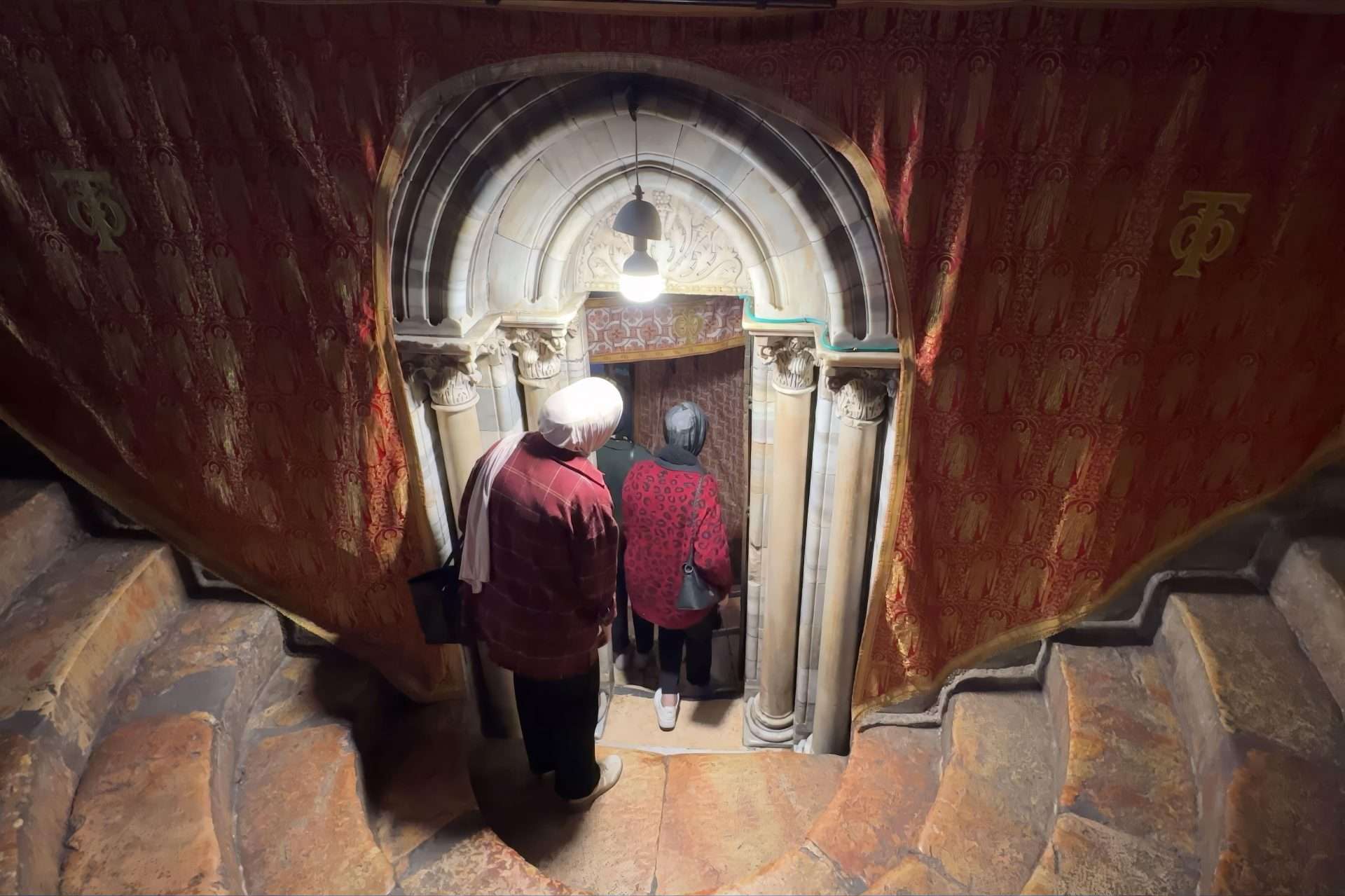 People enter to the Grotto at the Church of the Nativity in Bethlehem, West Bank.