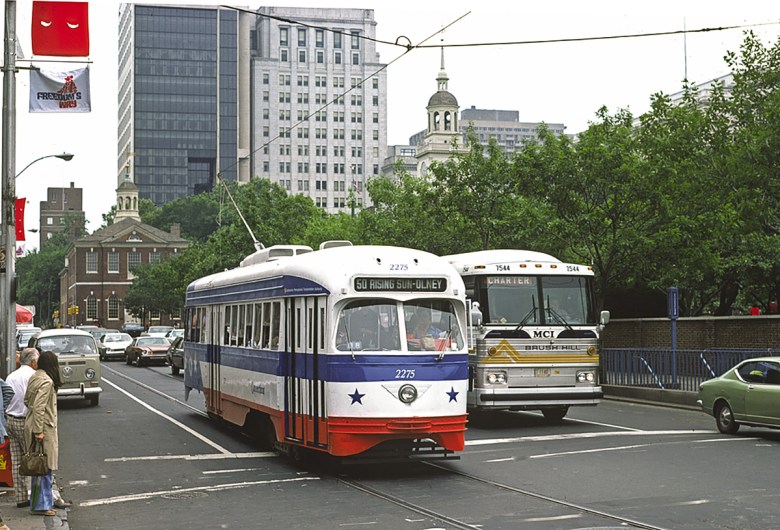 A SEPTA Route 50 trolley in May 1976. (Wikimedia Commons)