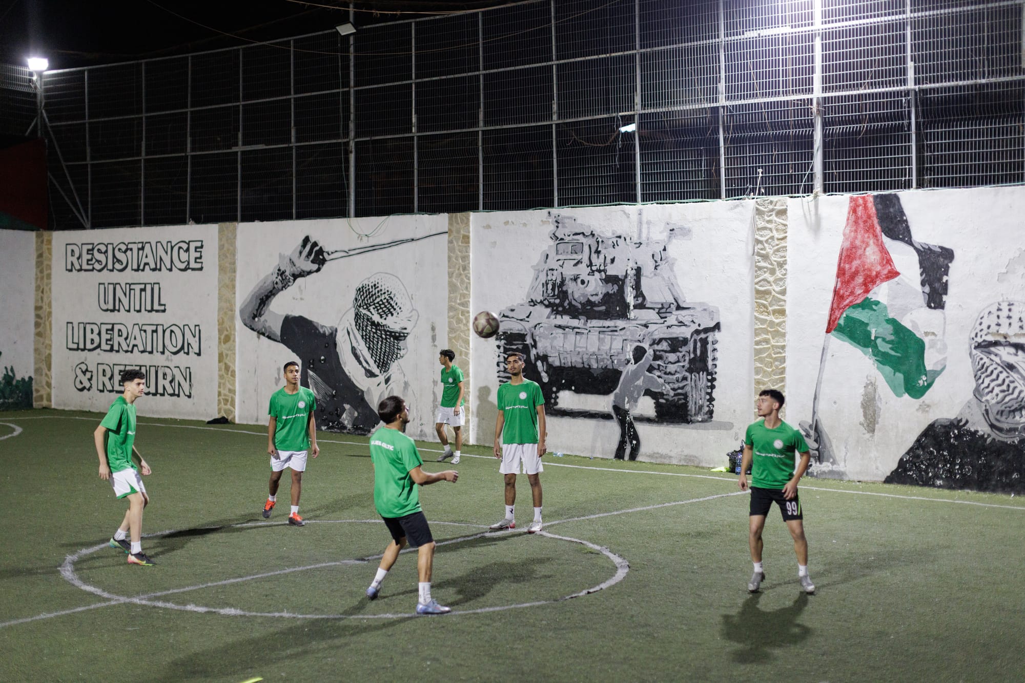 “Some guys here [in the camp] might get arrested,” he says. “Some might be killed. We have to tell them the truth. We explain to our children and support them. It’s our struggle as Palestinians. We are under occupation.”
