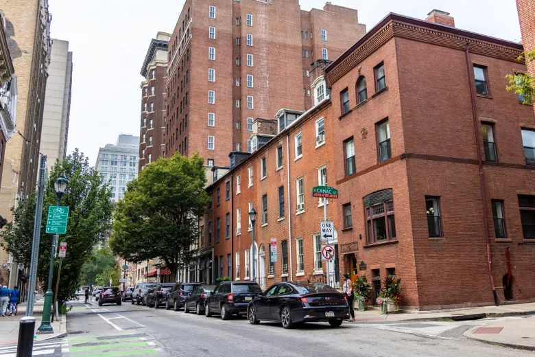 Camac and Spruce streets in Philadelphia’s Washington Square West historic district. (Kimberly Paynter/WHYY)