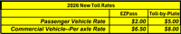 A new toll rate structure for 2026 will take effect on the first second of the new year on January 1, 2026, the commission said in a news release Wednesday.