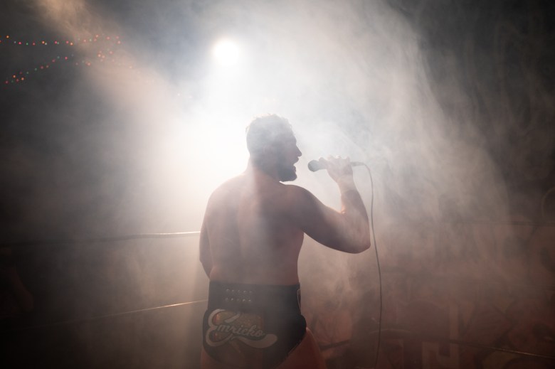 Gianni Michael Emricko takes to the microphone before facing off against KC Warr on Jan. 13, 2025.