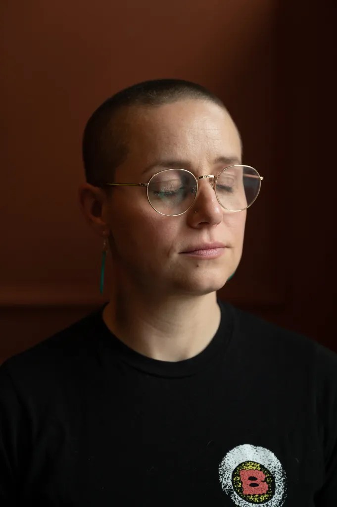 Callie DiSabato, a Not on Our Dime organizer, sits for a portrait at home on March 23, 2025.
