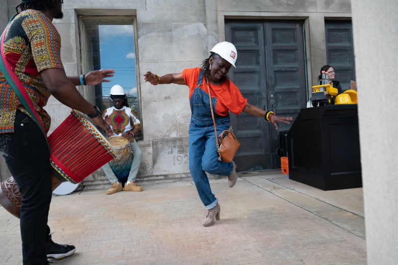 Lillian Sogga dances during a celebration for BOOM Concepts’ new rotunda project in the East End on May 15, 2025.