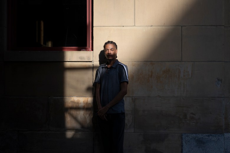 Dejour Palmer poses for a portrait in Downtown Pittsburgh on July 30, 2025. From Jordana Rosenfeld’s story An incarcerated man was hospitalized. His family and lawyer say they were “kept in the dark“