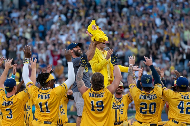 The Savannah Bananas present the “Banana Baby” to a sold out crowd at PNC Park on Aug. 30, 2025.
