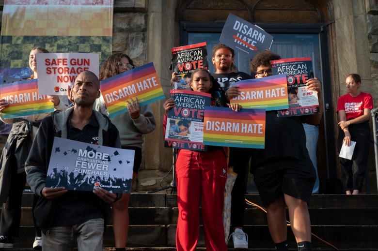 Local students and community members gather outside of Sixth Presbyterian Church in Squirrel Hill to rally against gun violence on Sept. 4, 2025.