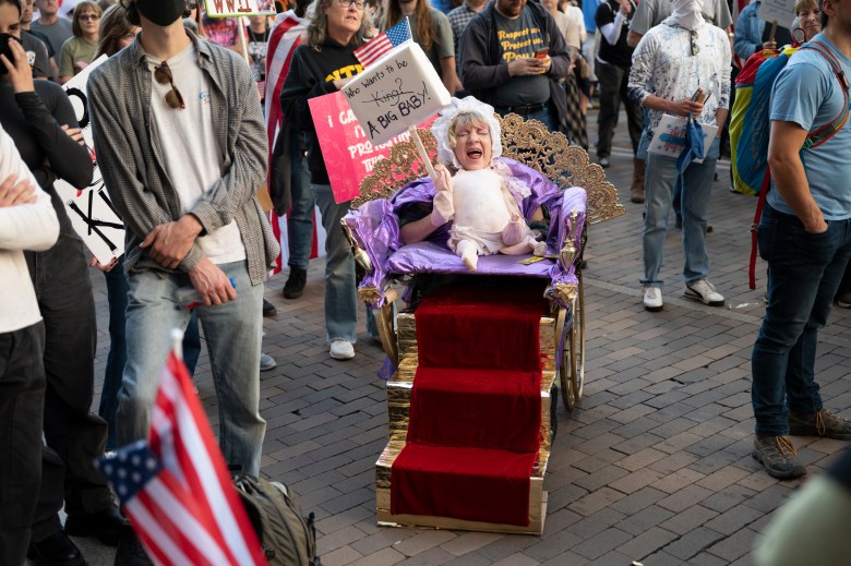 Thousands of people gather outside of the City-County Building in Downtown Pittsburgh during a ‘No Kings’ protest organized by Indivisible Pittsburgh on Oct. 18, 2025.