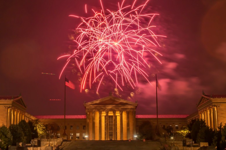 Fireworks erupt over the Philadelphia Museum of Art (Jonathan Wilson / WHYY)