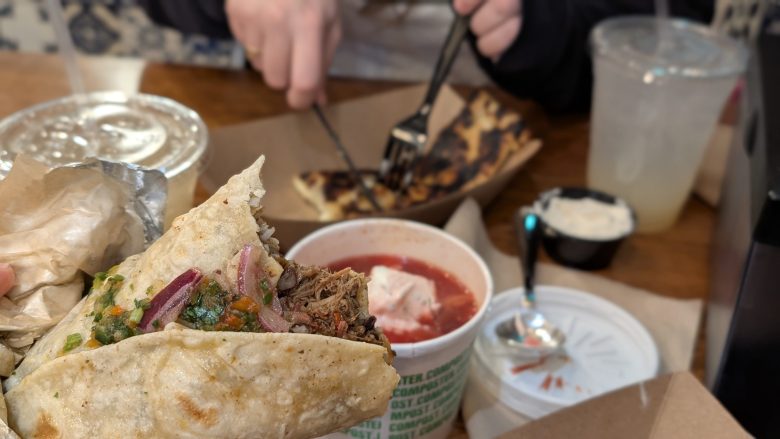 A lamb burrito, borscht and khachapuri from Zozula’s pop-up. Photo by Roman Hladio.