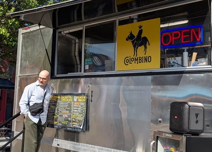 Ian Riggins stands outside of the Mr. Colombino food truck in Lawrenceville Credit: CP Photo: Amanda Waltz